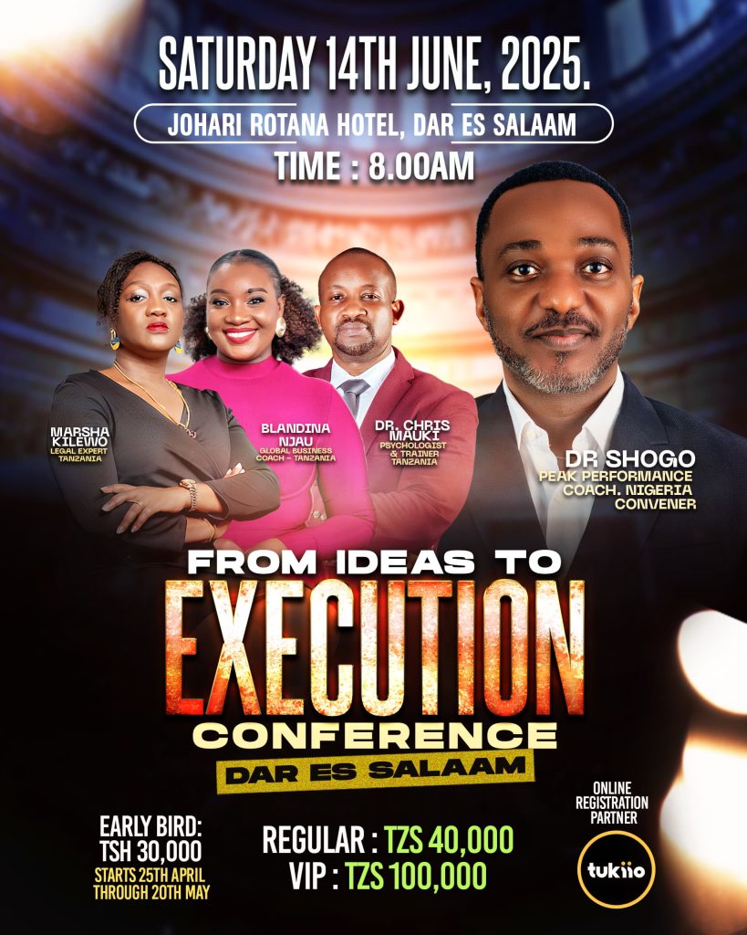 Don’t wait! The clock is ticking, and seats are filling up fast. Take action now to secure your spot for the From Ideas to Execution Conference – Tanzania Edition.